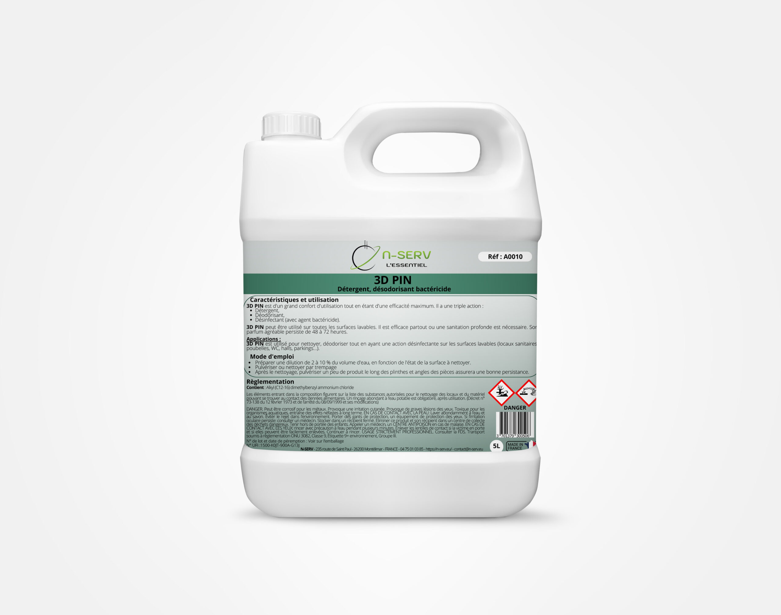 Le 3D PIN est une solution professionnelle « Triple Action » conçue pour le nettoyage et la désinfection de toutes les surfaces lavables. Fabriqué en France, ce produit allie une efficacité bactéricide maximale à un confort d’utilisation exceptionnel.